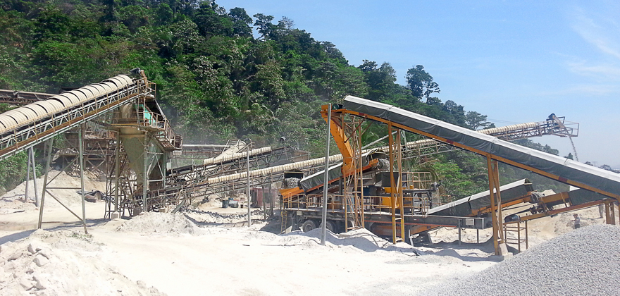 該項(xiàng)目位于馬來尼西亞,以生產(chǎn)建筑用砂石骨料為主的移動(dòng)式破碎篩分系統(tǒng),該項(xiàng)目由我公司與新加坡Trimax公司共同實(shí)施工藝設(shè)計(jì),設(shè)備制造,系統(tǒng)安裝調(diào)試,系統(tǒng)培訓(xùn)交付運(yùn)行,該項(xiàng)目因考慮客戶的周期性施工,同時(shí)為了提高系統(tǒng)安裝效率,節(jié)約投資成本,該系統(tǒng)破碎單元及篩分單元均采用了輪胎移動(dòng)式方案。因該項(xiàng)目加工的料源為客戶原有礦山顎破生產(chǎn)的粗骨料,因而該項(xiàng)目設(shè)計(jì)的是中碎圓錐和細(xì)碎圓錐兩級(jí)破碎和篩分分級(jí)段,并配置了車載集裝箱式集中控制室。
