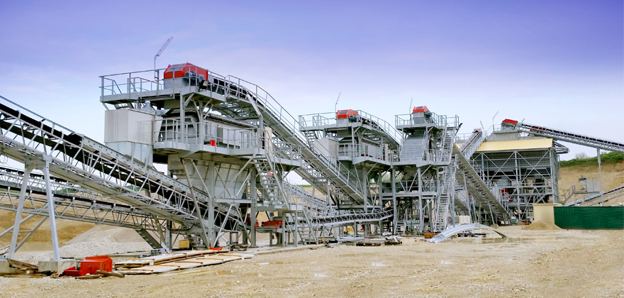 該系統(tǒng)示意工藝適用于時(shí)產(chǎn)800噸花崗巖、玄武巖類硬性物料的加工破碎,將經(jīng)過爆破處理或開挖、洞采的大塊毛料通過自卸車上料至原料倉,經(jīng)過具有預(yù)篩分功能的棒條給料機(jī)均勻的供給顎式破碎機(jī)破碎,經(jīng)顎式破碎機(jī)破碎后的半成品物料通過皮帶機(jī)輸送給具有中細(xì)碎功能的圓錐破碎機(jī)進(jìn)行二次破碎,經(jīng)圓錐破碎機(jī)二次破碎后的混合成品骨料經(jīng)過皮帶機(jī)輸送至后續(xù)一篩車間進(jìn)行分級篩分,篩分將大于用戶需要的大顆粒物料再通過皮帶機(jī)輸送至細(xì)碎圓錐破碎機(jī)進(jìn)行破碎,破碎后的物料也進(jìn)入一篩車間進(jìn)行篩分,滿足客戶需要的合格成品通過皮帶機(jī)輸送至成品料倉,不符合要求的大顆粒再次返回細(xì)碎圓錐破碎機(jī)進(jìn)行循環(huán)破碎。如果成品砂需要水洗也可在一篩下面配置洗砂機(jī)用于成品砂的水洗。該系統(tǒng)的棒條給料機(jī)還具有預(yù)篩分功能,可以將原料中的細(xì)顆粒物料提前分離直接進(jìn)入后續(xù)的破碎設(shè)備,也可將原料中的泥土雜物作為棄料預(yù)先分離。