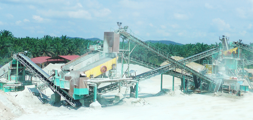時產(chǎn)60-200噸石灰石(白云巖)類巖石的砂石骨料生產(chǎn)線,將經(jīng)過爆破處理或開挖洞采的小于425mm的毛料通過棒條給料機(jī)均勻的供給顎式破碎機(jī)破碎,經(jīng)顎式破碎機(jī)破碎后的半成品物料在50-120mm左右,通過皮帶機(jī)輸送給反擊式破碎機(jī)進(jìn)行二次破碎,經(jīng)反擊破二次破碎后小于35mm的混合骨料經(jīng)過皮帶機(jī)輸送至后續(xù)一篩車間進(jìn)行分級篩分,篩分過后將大于用戶需要的大顆粒物料再通過皮帶機(jī)重新返回反擊式破碎機(jī)循環(huán)破碎,篩分過后滿足客戶需要的不同顆粒級別的成品通過出料皮帶機(jī)輸送至成品料倉。如果成品砂需要水洗也可以配置洗砂機(jī)用于成品砂的水洗。該系統(tǒng)的棒條給料機(jī)還具有預(yù)篩分功能,可以將原料中的細(xì)顆粒物料提前分離直接進(jìn)入后續(xù)的破碎設(shè)備,也可將原料中的泥土雜物作為棄料預(yù)先分離。