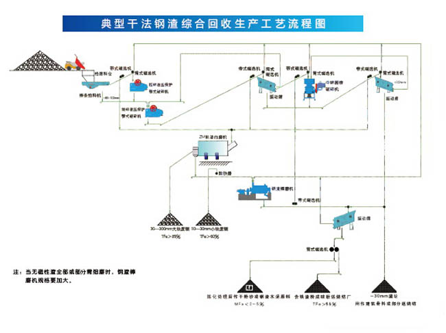 針對(duì)各鋼鐵企業(yè)的特點(diǎn),公司分別研制出了干法和濕法兩種鋼渣高效綜合回收利用生產(chǎn)工藝和成套設(shè)備,其生產(chǎn)能力達(dá)30~200萬噸/年,可供廣大鋼渣處理廠選擇,使鋼渣得到高效綜合利用實(shí)現(xiàn)零排放,為鋼鐵企業(yè)實(shí)現(xiàn)循環(huán)發(fā)展,建設(shè)節(jié)約型企業(yè)提供成套高效節(jié)能工藝和設(shè)備保障。