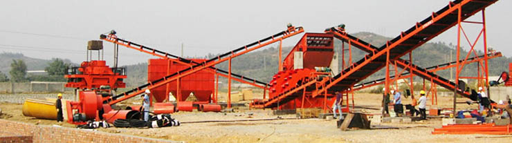配套設(shè)備:采用各種給料機、顎式破碎機、強力反擊破碎機、圓錐破碎機、PL立式?jīng)_擊破碎機、篩分設(shè)備、輸送設(shè)備、除塵器、PLC控制、選粉機(干法)和洗砂機(濕法)等設(shè)備。