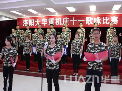 在國慶節(jié)來臨之際,為慶祝中華人民共和國成立65周年,9月30日下午兩點(diǎn),我洛陽大華重機(jī)公司特舉辦“迎國慶、頌歌獻(xiàn)給祖國”歌詠比賽。旨在傳播愛國主義教育,加強(qiáng)企業(yè)文化建設(shè),激發(fā)員工愛國熱情和干事業(yè)、謀發(fā)展的激情,增強(qiáng)公司員工隊(duì)伍的凝聚力、向心力,展示我公司員工積極向上的新風(fēng)貌。