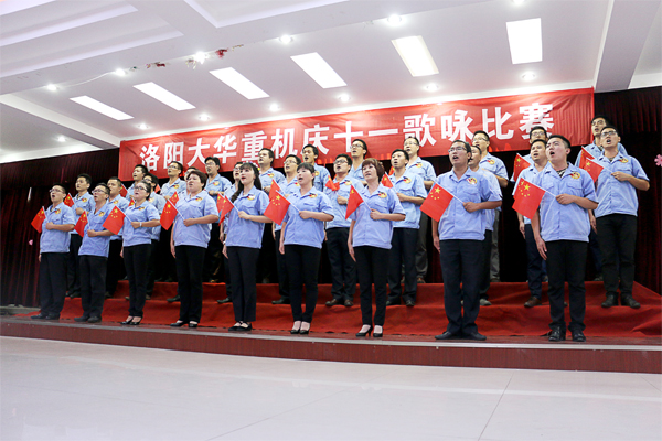 在抗戰(zhàn)勝利70周年紀(jì)念之際,我們又迎來(lái)了建國(guó)66周年。為慶祝這一特殊的節(jié)日。我洛陽(yáng)大華重機(jī)公司特舉辦了2015年“慶十一”歌詠比賽。9月30日下午,全體員工歡聚一堂,再次用歌聲唱響旋律,用歌聲喚醒記憶,用歌聲表達(dá)我們對(duì)祖國(guó)深深的愛(ài)意。忠誠(chéng)于黨,就是要堅(jiān)決聽(tīng)黨指揮。熱愛(ài)人民,就是要全心全意的為人民服務(wù),為建設(shè)富強(qiáng)、民主、文明、和諧的社會(huì)主義現(xiàn)代化國(guó)家貢獻(xiàn)力量。