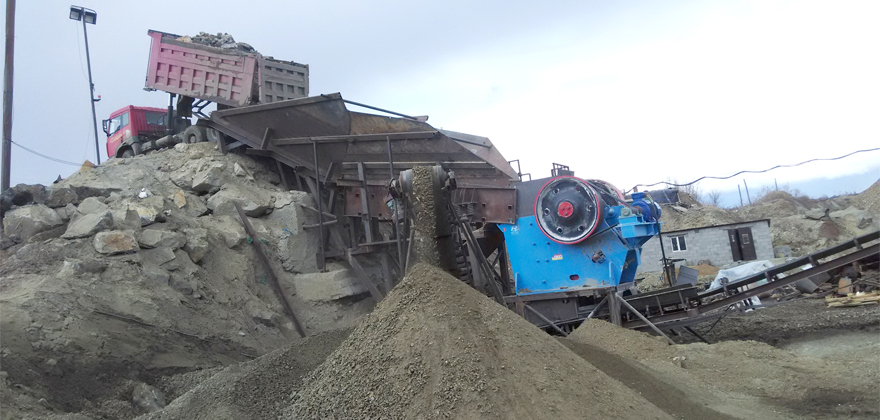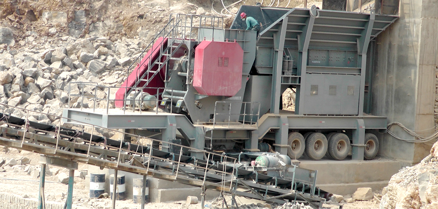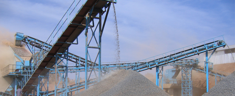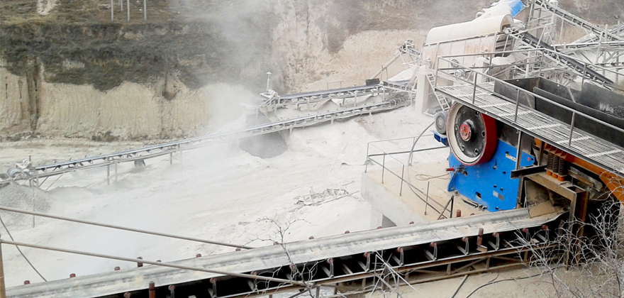 花崗巖大塊物料經(jīng)料倉由振動(dòng)給料機(jī)均勻喂料,輸送到顎式破碎機(jī)進(jìn)行粗碎,粗碎后的物料經(jīng)振動(dòng)篩篩分后,由皮帶輸送機(jī)輸送至反擊式破碎機(jī)或圓錐破碎機(jī)進(jìn)行中細(xì)碎。